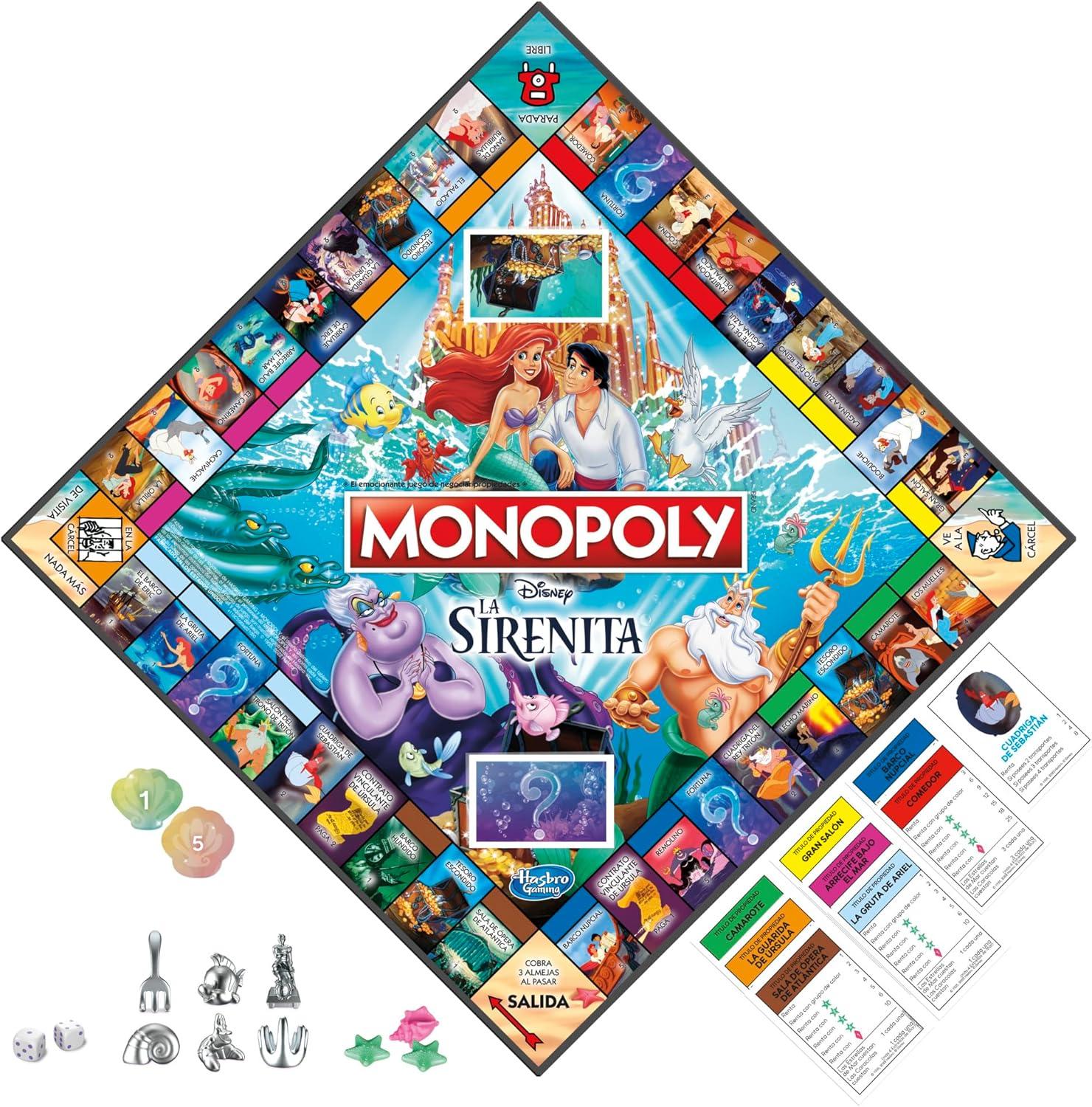 Monopoly Hasbro Gaming Disney’s The Little Mermaid Edition Board Game, 2-6 Players for Family and Kids Ages 8+, with 6 Themed Tokens (Amazon Exclusive)(Board Games)