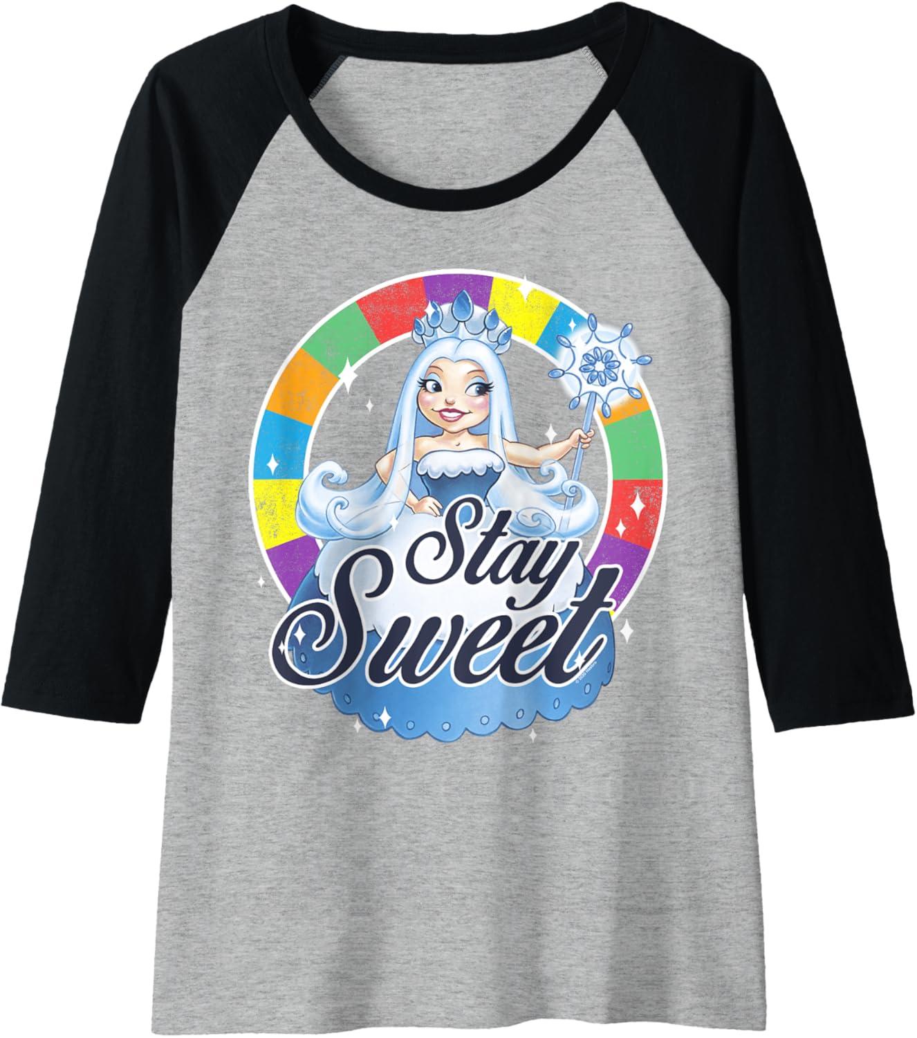 Candy Land Stay Sweet Princess Frostine Game Wheel Logo Raglan Baseball Tee(Black/Athletic Heather)