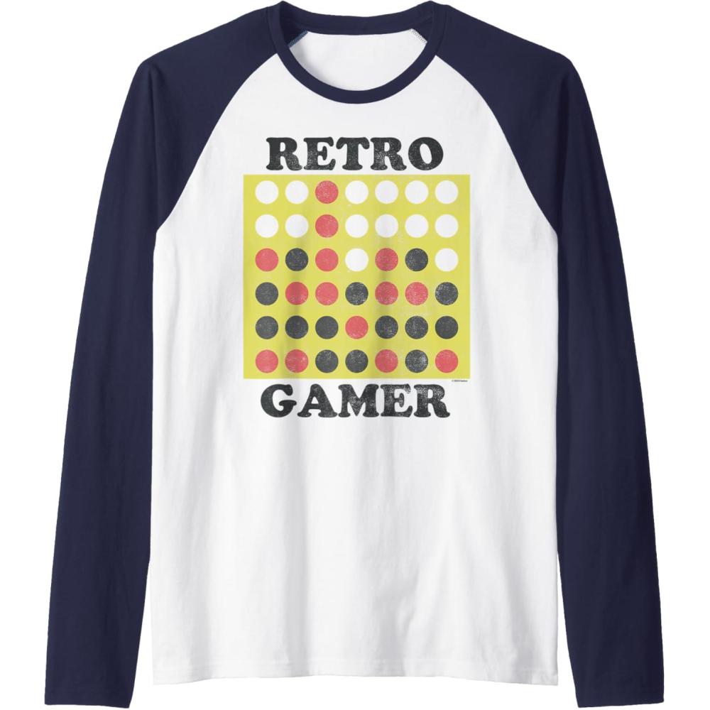 Connect Four Retro Gamer Board Raglan Baseball Tee(Navy Blue/White)