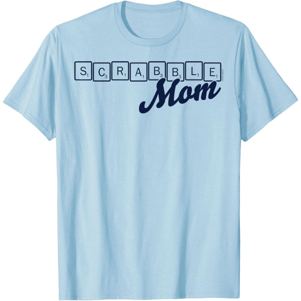 Scrabble Mother’s Day Mom Tiles Logo T-Shirt(Baby Blue)